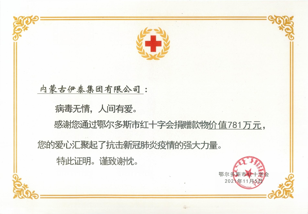伊泰集团捐赠781万元物资助力鄂尔多斯疫情防控