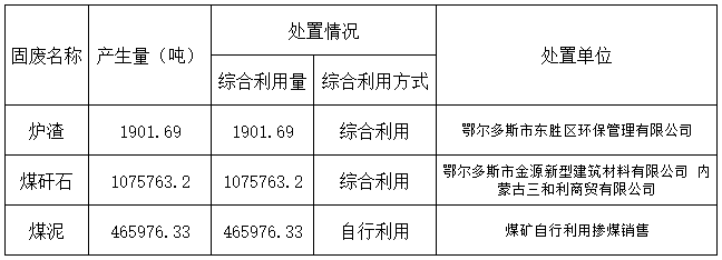 内蒙古伊泰煤炭股份有限公司塔拉壕煤矿2023年固体废物信息公示